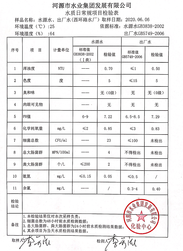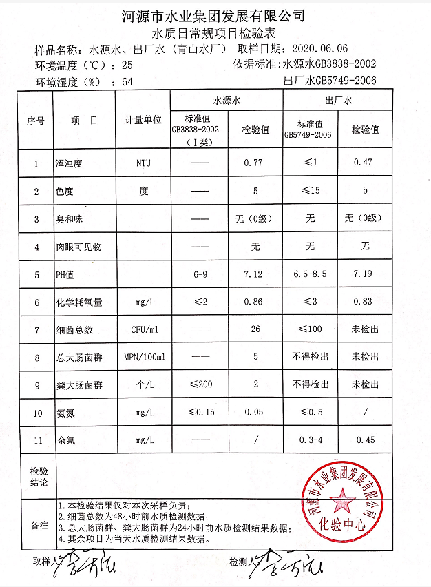 2020年6月6日水質(zhì)檢驗報告