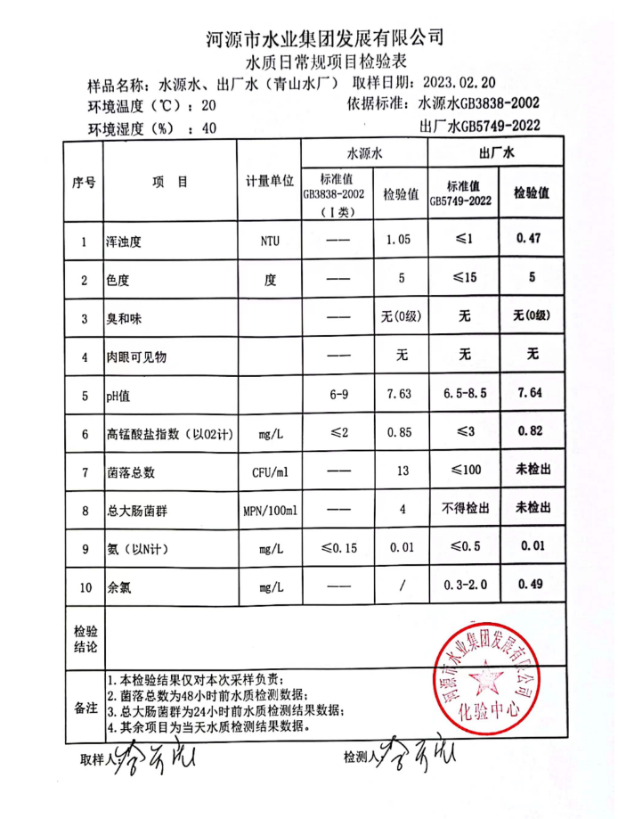 2023年2月20日水質(zhì)檢驗報告