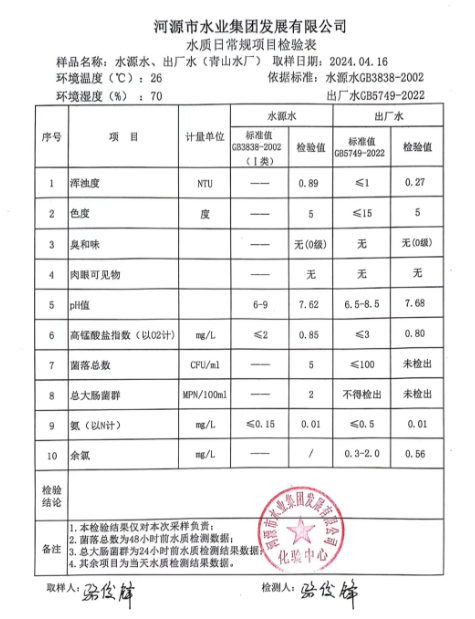 2024年4月16日水質(zhì)檢驗報告
